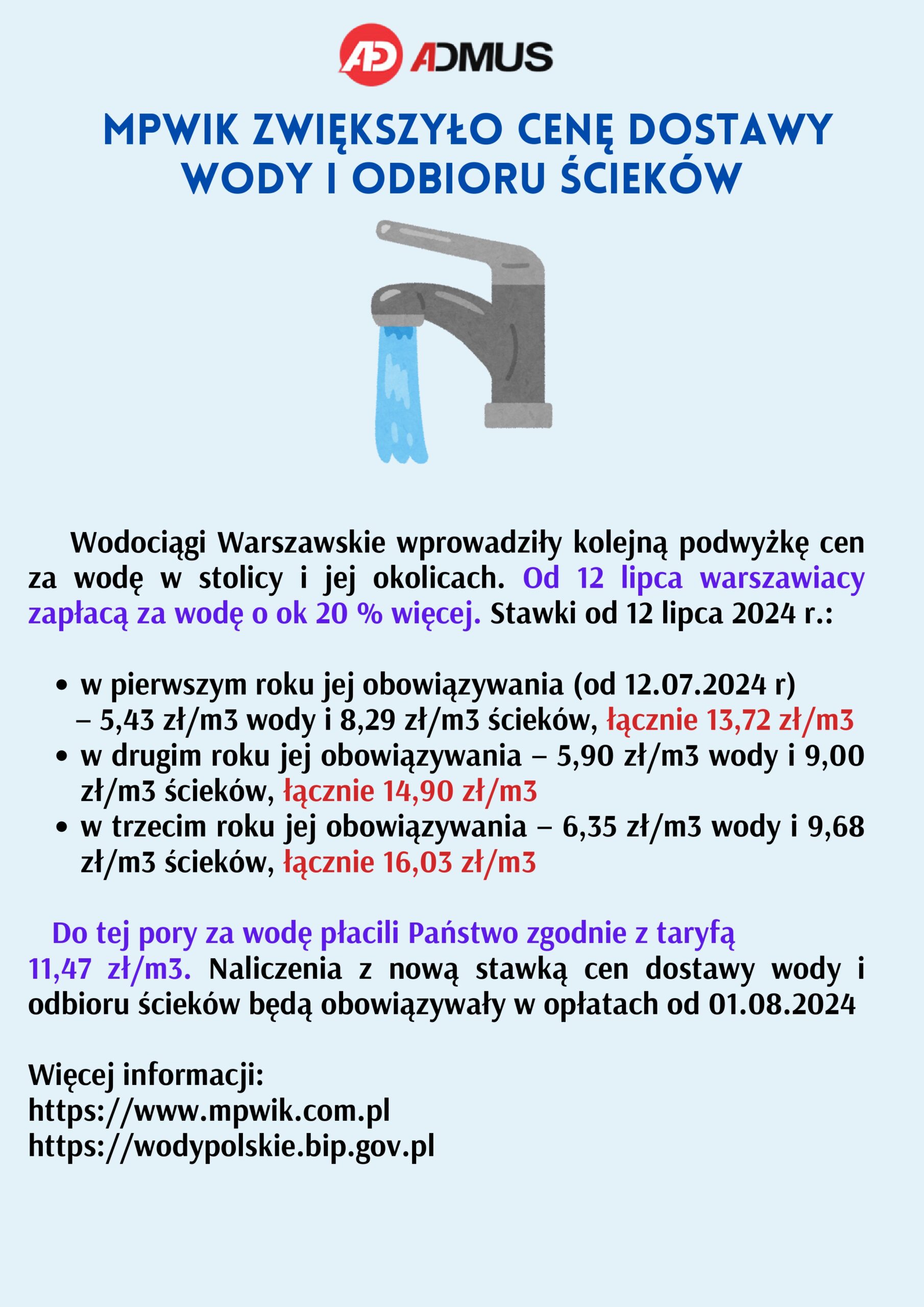 WM JK 31A – podwyżka cen wody i odprowadzenia ścieków